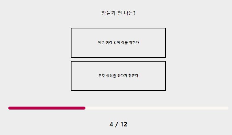 잠들기 전 나는 아무 생각 없이 내일 할 일들을 생각하고 잠드는 편이에요