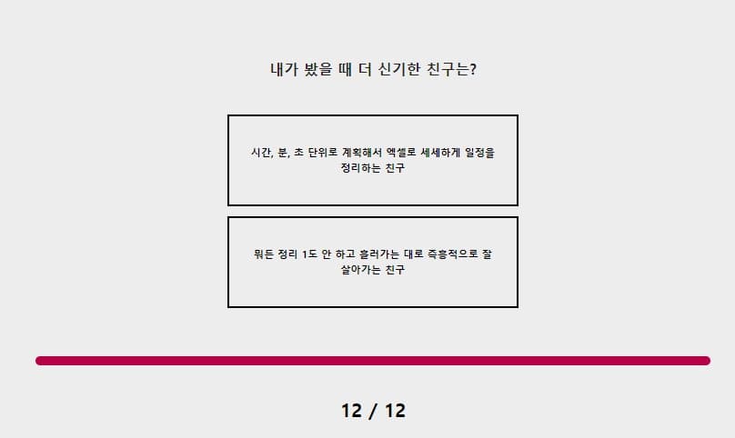 첫번째 질문 나와 더 가까운 것은 무엇인가?