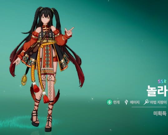 결투장에서 가장 많이 나오는 샬롯의 카운터로 번개 마법을 구사하는 놀라입니다. 샬롯이 물속성이다 보니 번개로 카운터를 칠 경우에 많이 사용되고 번개 속성 딜러는 물 속성 던전에서 필요한 캐릭터이므로 키워볼 수 있는 영웅입니다.