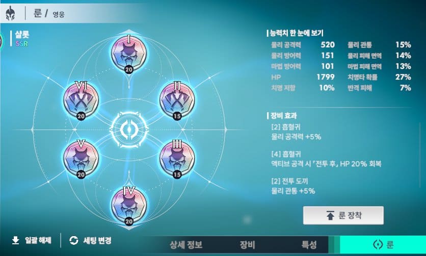 룬의 경우 1번~3번은 능력치가 고정입니다.