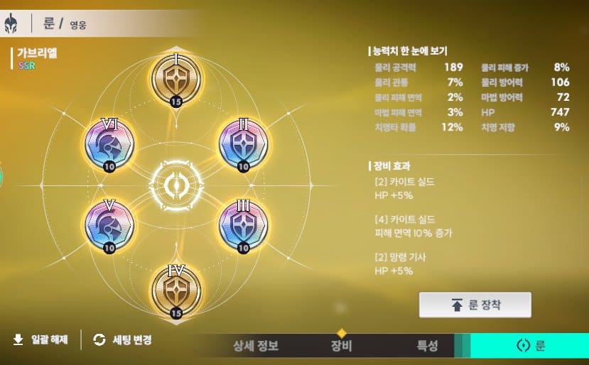 아르케랜드는 기존 랑그릿사와 같은 시스템을 구축하고 있습니다. 룬은 6개를 장착할 수 있으며 각 사용처에 따라 다르게 설정해야 영웅의 성능을 향상할 수 있습니다.