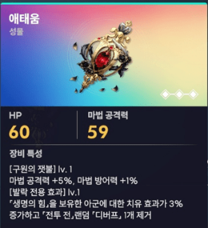 패시브를 보면 특이하게 별의 조각이라는 걸 사용하고 있습니다 전투 시작 시 자신이 4단계를 보유하고 있고 아군에게 스킬을 시전 후 해당 대상에게 생명의 힘 상태를 부여해 줍니다. 생명의 힘은 전투 전 HP를 회복시켜 주는 스킬이며, 별의 조각은 1단계당 마법 공격력이 6% 증가하게 됩니다.