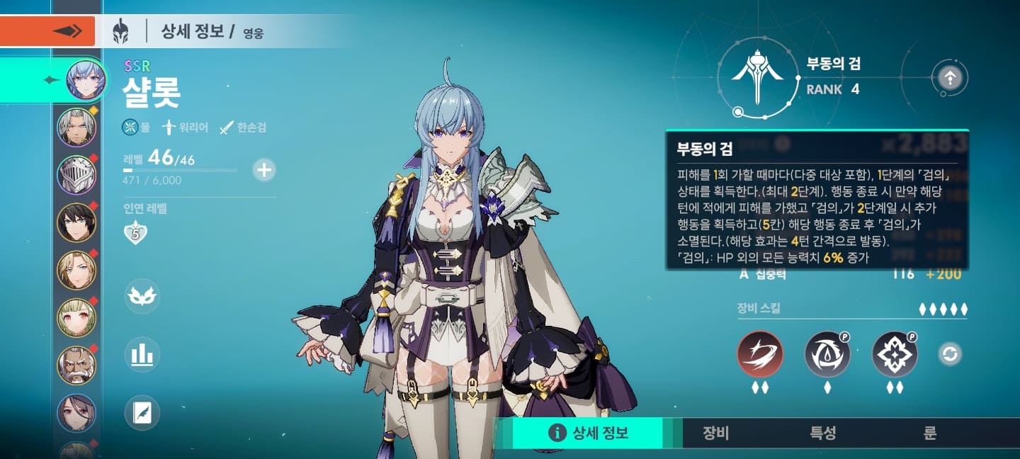 지크하트가 현재 1 티어로 PVE와 PVP에서 모두 사용하는 캐릭터입니다. 지크하트와 샬롯만 있다면 게임을 즐기시는데 전혀 문제가 없을 정도입니다.