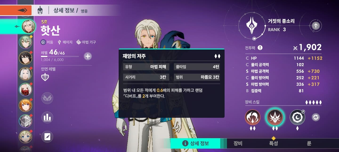 로하네스는 SR 캐릭터 중 단연 1등의 힐러로 SSR 등급이라고 해도 무방할 정도의 캐릭터입니다.