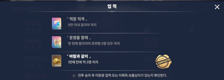 특성을 위한 재화 획득에는 클리어 3개의 조건만 얻게 되면 소탕이 가능해집니다.