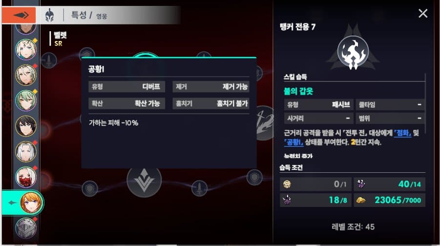 영웅의 특성 강화는 스킬강화와 기본적인 스텟을 올려주는 역할이므로 차원의 경계에서 최소한으로 클리어 3개 조건은 만족시키고 다음 스토리를 진행하시는 게 좋습니다.