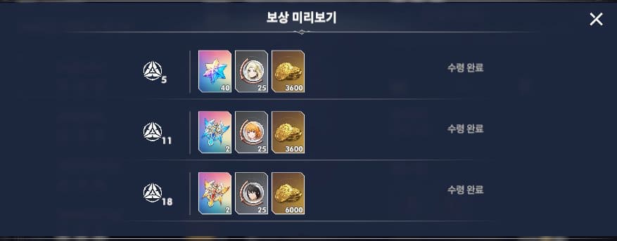 일반의 경우 1-1부터 1-6까지 클리어를 완료하면 클리어 보상으로 주인공 3개 캐릭터의 진급 조각을 지급해 줍니다.