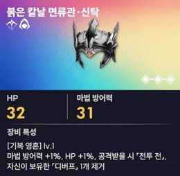 행동 종료 시 주변 2칸 이내 마법 방어력이 높은 아군 1명에게 마법 방어력 30%를 증가시켜 주는 효과입니다. 마법 공격력이 높은 던전에 도전할 때 도움이 됩니다. 스토리가 진행될수록 물리 방어력보다 마법 방어력의 중요도가 올라갑니다.