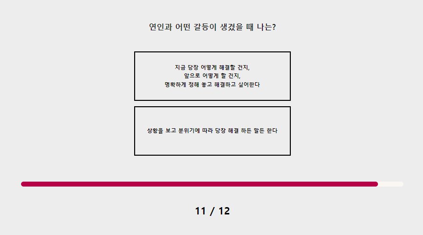 연인과 갈등이 생겼을 때 나의 선택은? 갈등이 생긴 문제를 빠르게 해결하고 어떻게 할 건지? 무엇이 문제인지? 얘기하는 게 좋아 보여요. 그래야 똑같은 문제로 안 싸울 것 같아서요