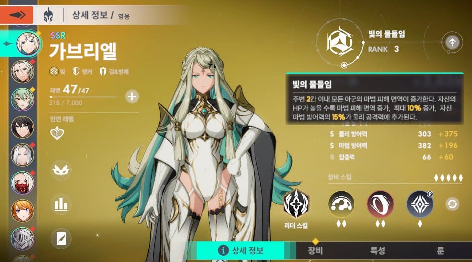 새로운 빛의 탱커로 현존하는 탱커 리처드와 비교대상이 진행됩니다. 리더 스킬을 보유하고 있어 메이저와 레인저 시너지 효과가 기대되는 탱커입니다.